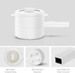 • POWERFUL AND PRACTICAL: With 700 watts of power, our upgraded electric hot pot is perfect for boiling water, hot pot, boiling noodles, ramen, eggs, oatmeal, porridge, dumplings, pasta, soup and more! Includes a steamer for eggs, vegetables, potatoes and more!