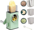 Safe to Use: Our rotary cheese grater with a handle keeps you safe from sharp blades, eliminating the risk of cutting your fingers. Blade replacement is effortless—simply place the knife bucket flat on the workbench, press down gently, and the blade will automatically fall off. The suction cup at the bottom locks firmly to the counter, ensuring convenient and stable operation without sliding.